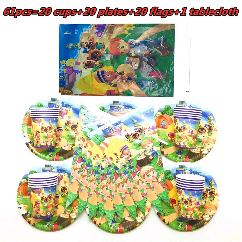 Animal Crossing New Horizons Game Party Decorations Disposable Tableware Happy Birthday Flag Cup Plate Tablecloth Party Supplies Disposable Party Tableware Aliexpress